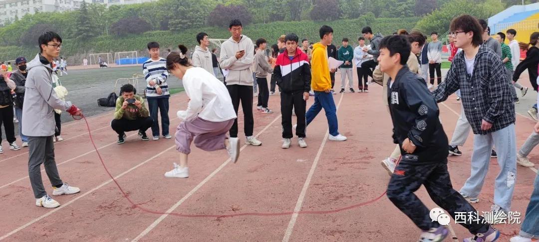 4月21日中午12:30和下午18:30测绘学院在米兰中国官方临潼校区田径场和体育馆参加全校“机械杯”跳绳大赛。