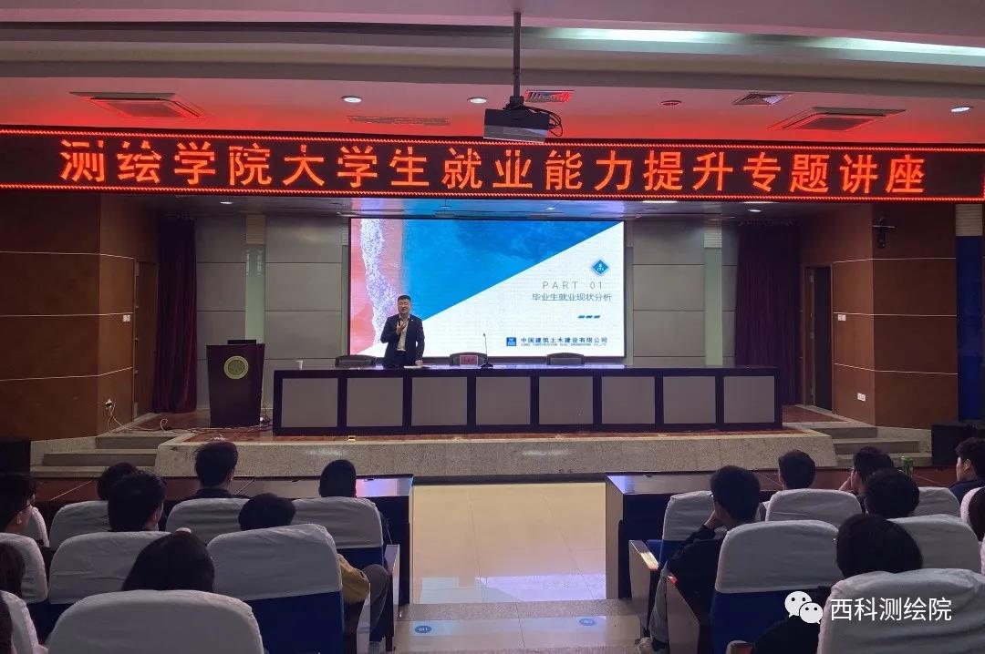 为提升大学生就业能力,解决就业焦虑等问题。2021年4月16日,测绘学院于校图书馆学术报告厅举办“大学生就业能力提升”专题讲座。特邀中国建筑土木建设有限公司西北公司党委书记——王永兴,为学生们分析就业现状,解决就业困惑。