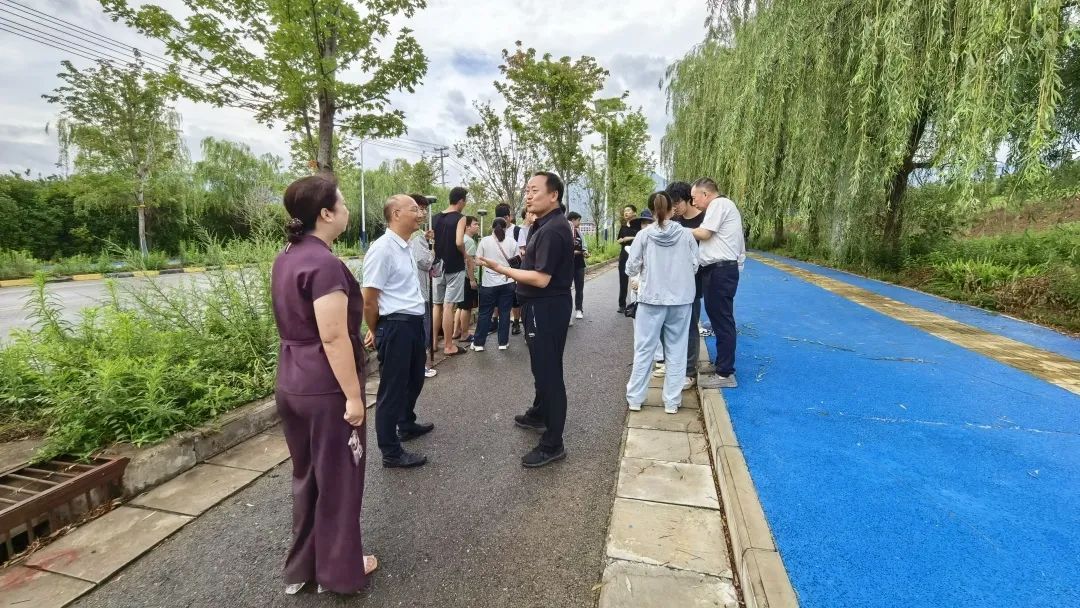 在汤峪镇塘子村工程测量学实习基地,戴开文一行看望了正在开展工程测量外业实习的师生们,与带队老师就实践能力培养如何助力学生就业、实习工作如何反哺教学等问题进行深入探讨。