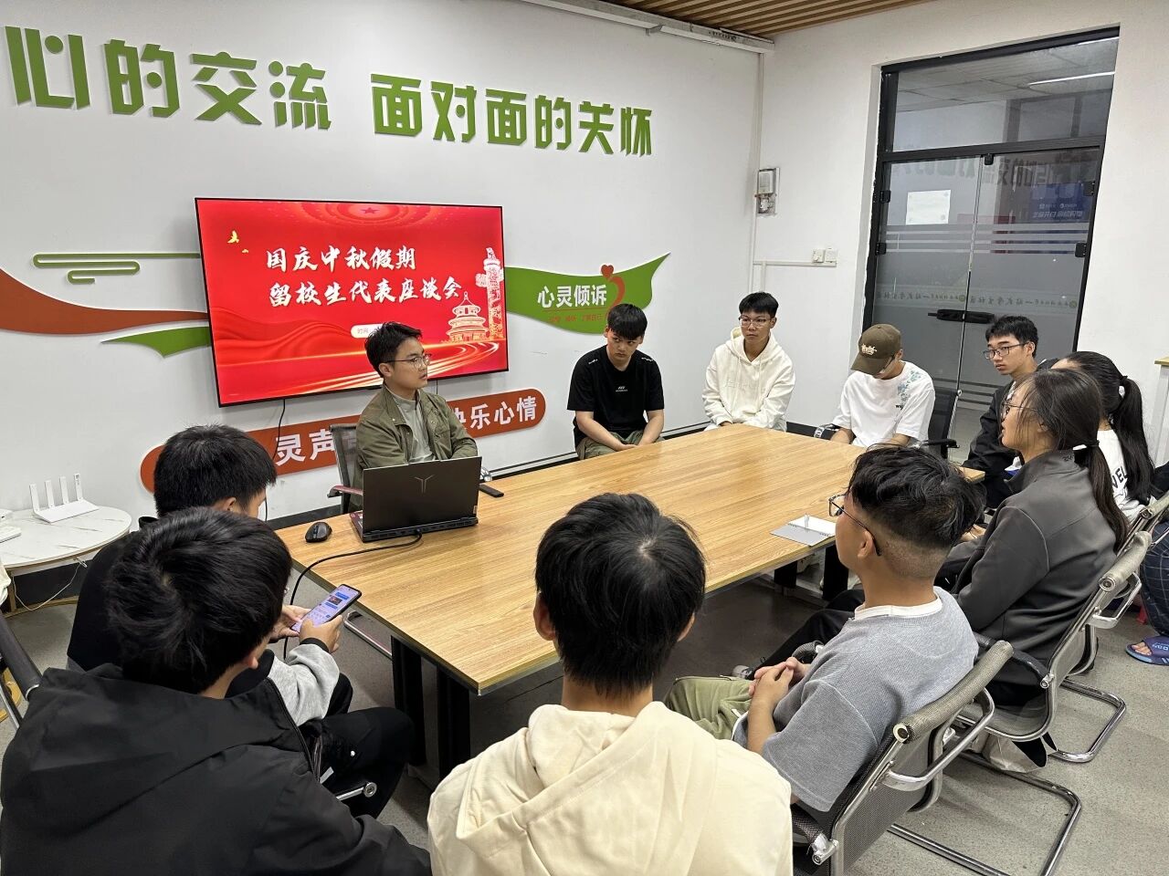 中秋月圆,国庆同庆。为做好假期留校学生的教育管理与服务工作,10月1日,测绘学院2025级在“一站式”学生社区召开国庆中秋假期留校学生代表座谈会。会议由2025级辅导员刘钊主持,十余名留校学生代表参加了会议。