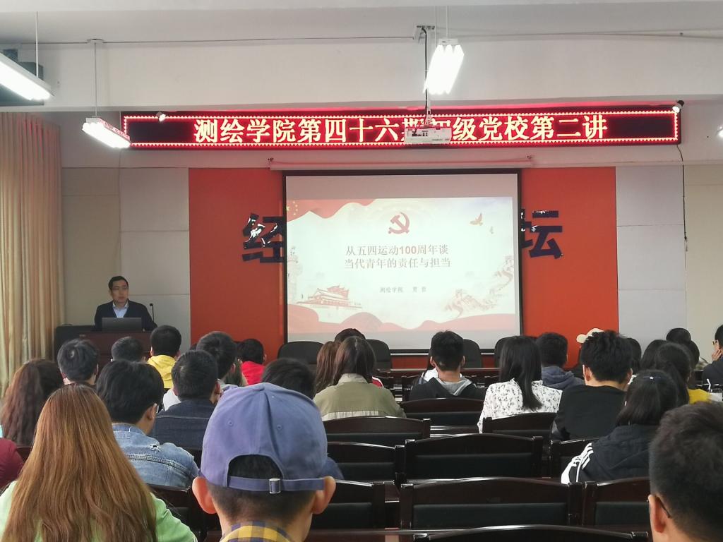 为增强全体入党积极分子对党的历史,制度,信念等的理解,了解世界格局现状,2019年5月9日下午13:00测绘学院于11教317室开展了第四十六期初级党校第二讲。全体入党积极分子到场学习,本次党课由测绘学院党委副书记贾哲主讲。