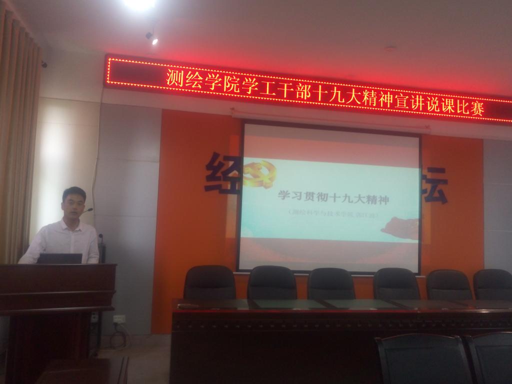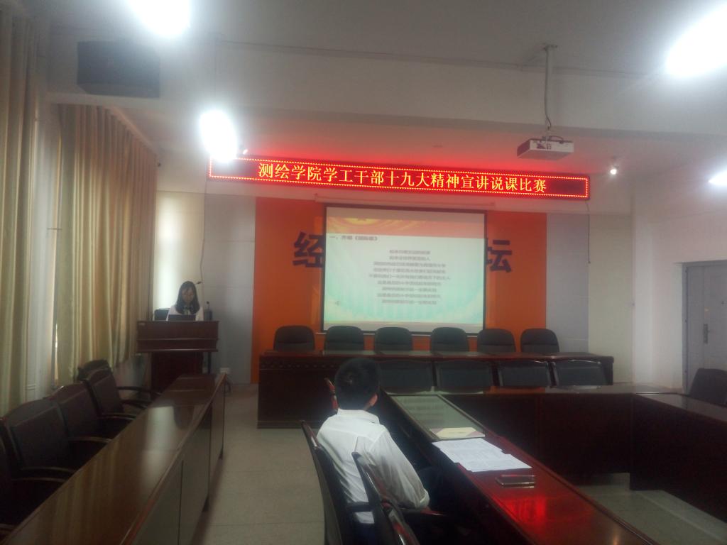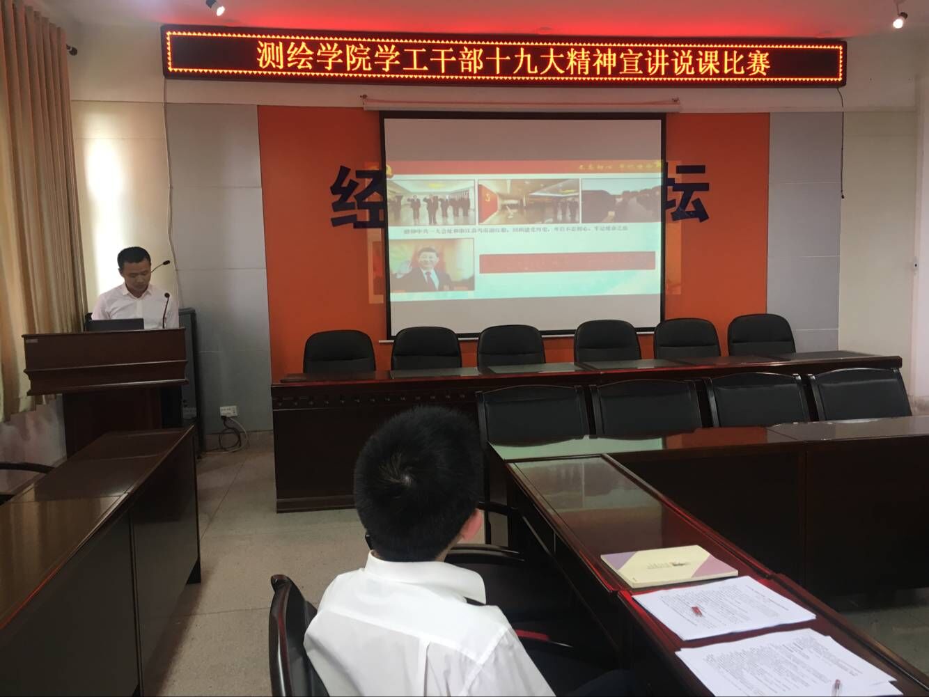 为进一步学习宣传贯彻好党的十九大精神,更好的为学院师生宣讲十九大精神,近日,测绘学院在临潼校区骊山校园举办学工干部十九大精神宣讲说课比赛。院党委副书记费秀水及全体辅导员参加了此次比赛。