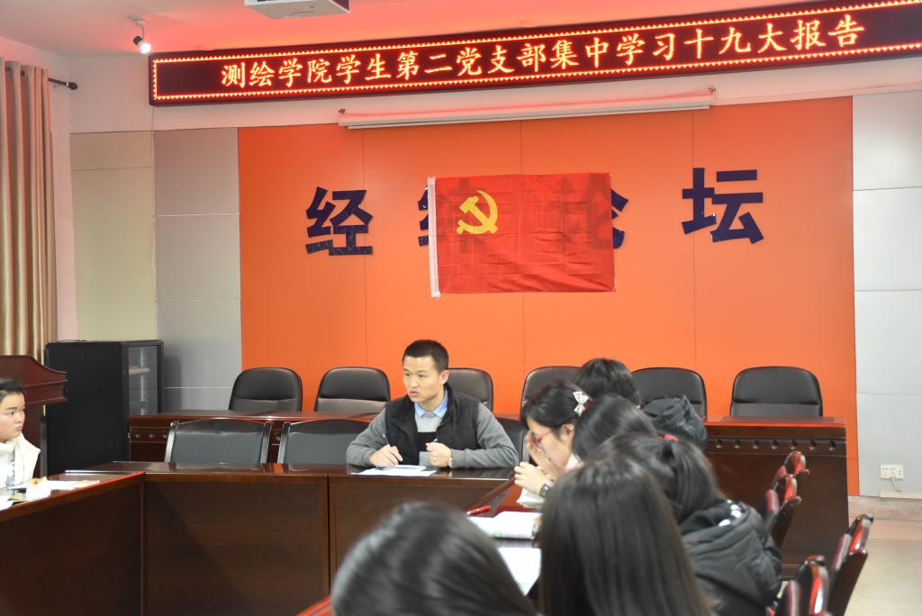 11月28日晚,测绘学院学生第二党支部在临潼校区骊山校园学院会议室召开集中学习十九大精神大会。支部书记张雷及支部全体成员参加此次会议。会议由学生第二党支部书记张雷主持。