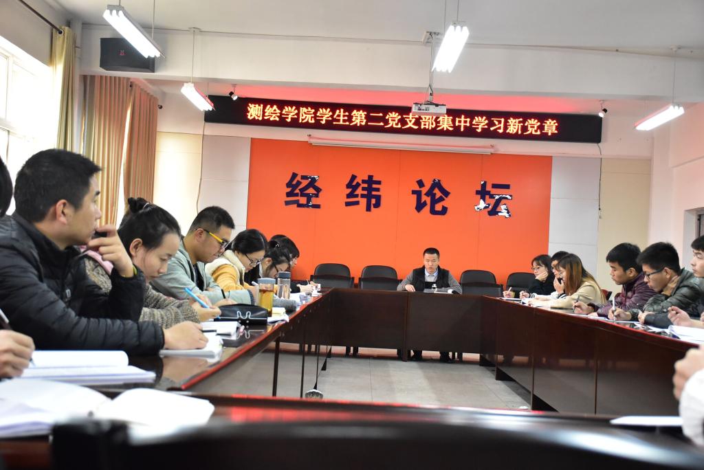 2017年11月13日13点,测绘学院学生第二党支部在11教会议室集中学习新党章。党支部书记张雷以及学生第二党支部全体成员参加此次会议。大会由学生第二党支部书记张雷主持召开。