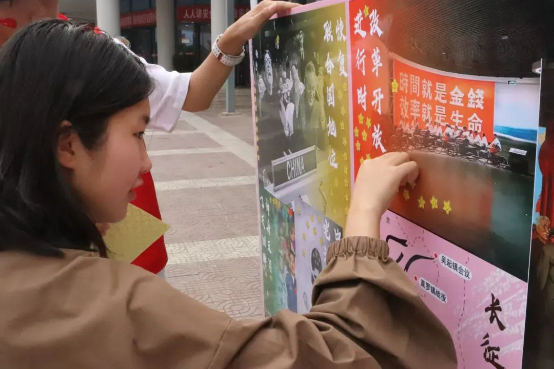 活动中,学生们以笔寄情,书写下对祖国的深情祝福与美好愿景。随后,这些承载着爱国热忱的纸条被折叠成红色五角星形状,逐一粘贴于展板的“长征路”上,象征着中华儿女团结一致、砥砺前行,为祖国的繁荣富强贡献青春力量。