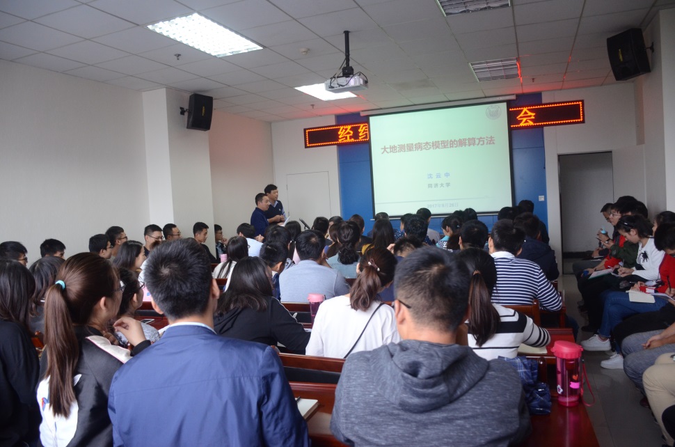 2017年9月26日教育部中国大陆构造环境监测网络联合研究中心同济大学分中心主任沈云中教授及国际著名大地测量学家徐培亮教授莅临AC米兰中文,分别做了题为“大地测量病态模型的解算方法”与“整体最小二乘”的学术报告。报告会由测绘学院副院长汤伏全教授主持,测绘学院100多名研究生参加了报告会。