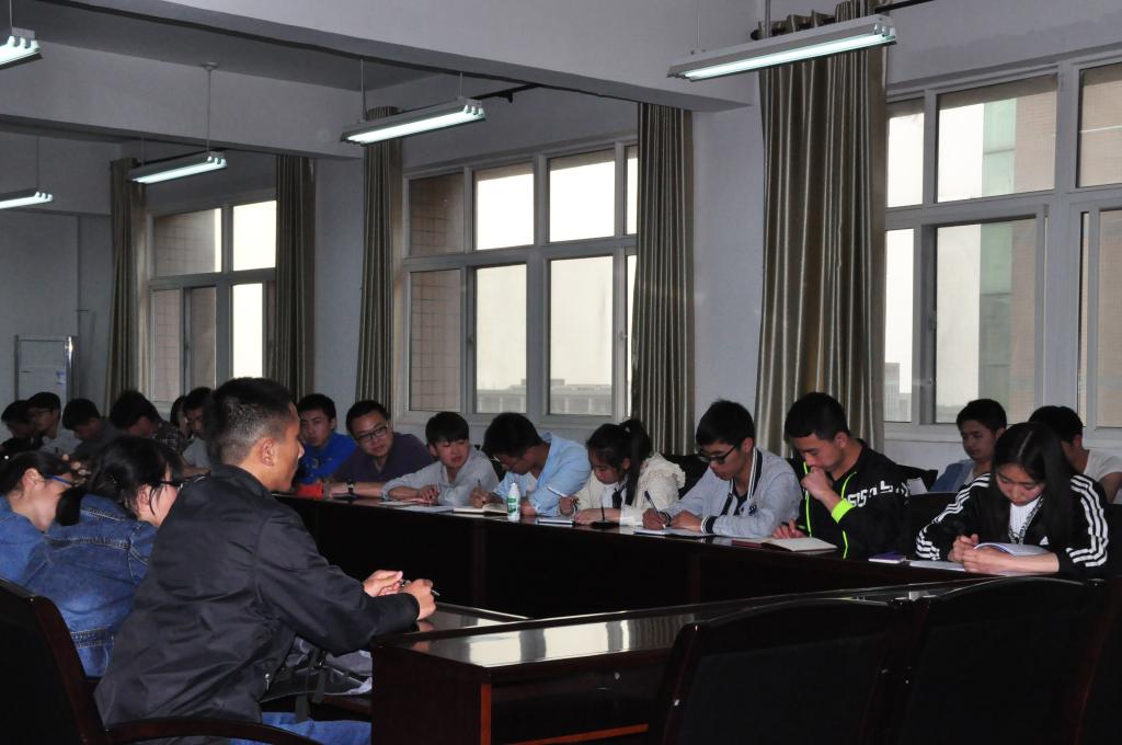 4月12日下午18点测绘学院2015级全体班委在11教317会议室召开了以“学习2016两会精神”为主题的交流会,会上传达学习了全国人大十二届四次会议和全国政协十二届四次会议精神。会议由2015级辅导员张雷老师主持。