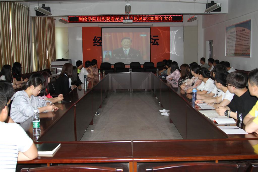5月4日上午,在临潼校区骊山校园11教317会议室,测绘学院组织收看习近平总书记在“纪念马克思诞辰200周年大会”上重要讲话现场直播。收看学习活动由学院党委书记殷屈娟主持,学院全体辅导员、学生党员及学生代表收看了直播。