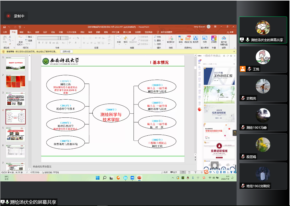 7月9日,测绘学院举办2022年硕士研究生暑期“优研计划”活动,学院领导班子、学科带头人、硕士生导师代表以及20余名2019级学生参加了本次活动。本次活动以线上腾讯会议形式举行,由副院长史晓亮主持。