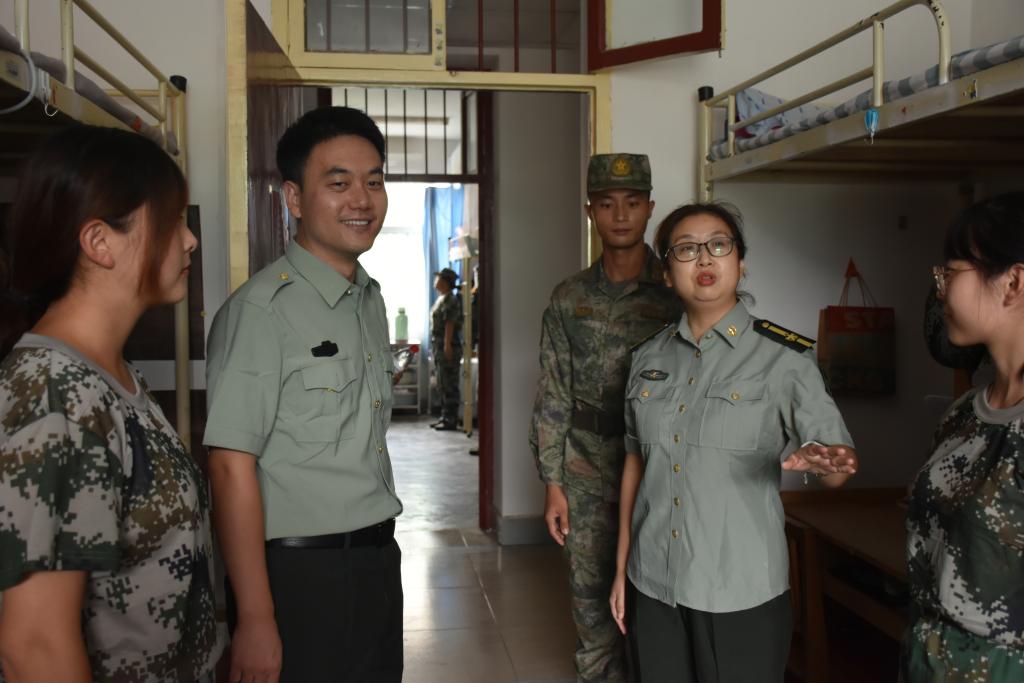 2022年8月19日下午,测绘学院党委副书记郝卿慰问了九营教官和全体军训学生。伊始,连同教官和辅导员在宿舍走访中了解了同学们生活和军训近况,勉励同学们相互团结、相互督促,强健体魄、砥砺意志,有质量的完成本次军训任务,为接下来三年的大学生活奠定基础。随后郝书记代表学院为承训教官送上祝福,表达了对教官的感谢。