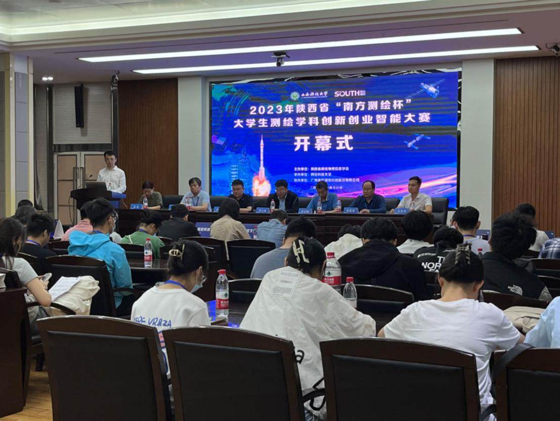 陕西省测绘地理信息局总工刘云峰、陕西省测绘地理信息学会秘书长郑志刚、自然资源部陕西测绘产品质量监督检验站站长杨新海、自然资源部第二地形测量队副院长杨少勇、学院副院长(主持工作)李朋飞、学院副院长竞霞、广州南方测绘科技股份有限公司西安分公司总经理马卓齐出席开幕式。开幕式由学院武继峰老师主持。与会的各位行业专家、嘉宾,在讲话中强调了教育和测绘信息事业在经济社会发展中的重要作用。同时也指出测绘行业应始终以提高高等教育质量为己任,将测绘技能竞赛作为展示师生风采的主要方式、推进高等教育校企合作的重要抓手、实现高等教育成果转化的重要途径,并对测绘地理信息高等教育提出了新的要求,对参赛师生提出了殷切希望。南方测绘西安分公司总经理马卓齐先生在讲话中介绍了公司基本情况及支持教育事业发展的具体措施。