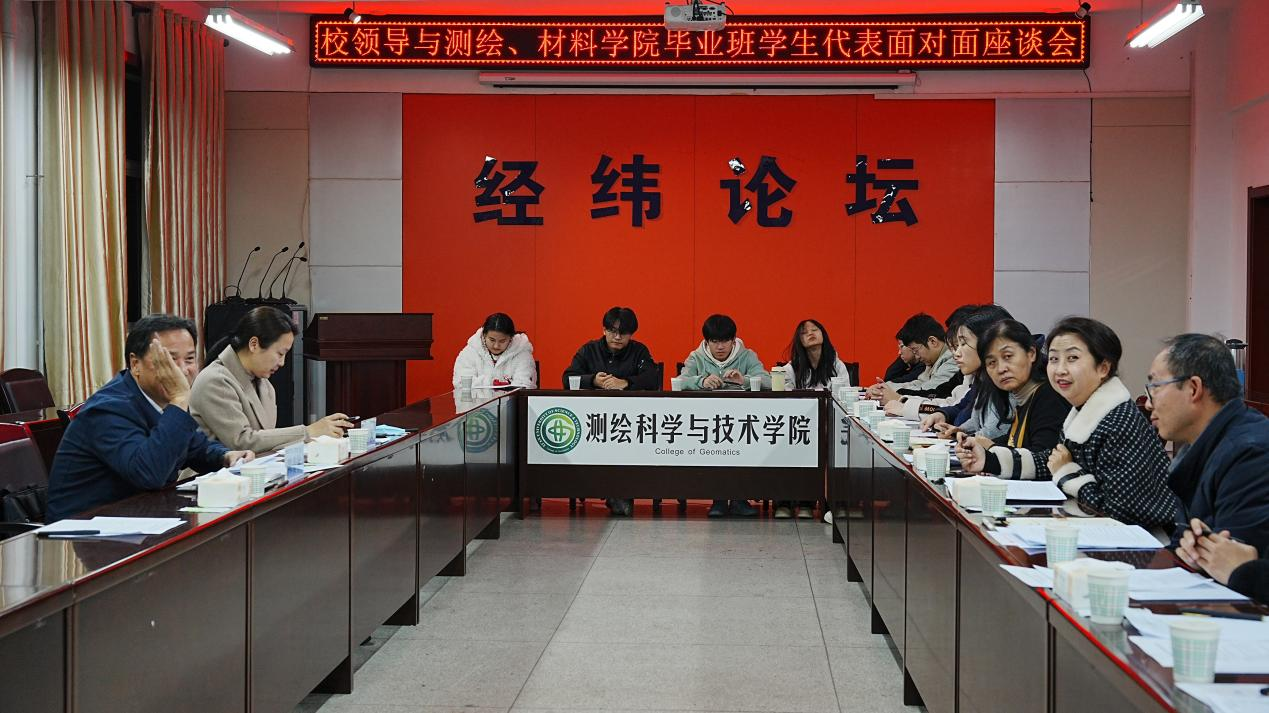 菁英启航,共话未来。11月28日晚,测绘学院与材料学院邀请校党委副书记陈春林、学工部副部长张颖参加学校学风建设月活动“校领导与学生面对面”座谈交流会。测绘学院党委副书记郝卿、材料学院党委副书记杨宝华、测绘学院辅导员张扬、材料学院辅导员马翠英以及毕业班16名学生代表参加座谈会,座谈在11教317举办,由郝卿主持。