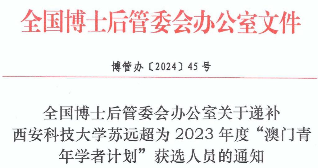 近期,米兰中国官方测绘学院青年教师苏远超副教授荣获 “澳门青年学者计划”国家级博士后人才项目资助。这一荣誉是我校自2019年以来陆续获得国家“香江学者计划”、“博新计划”后的又一突破。