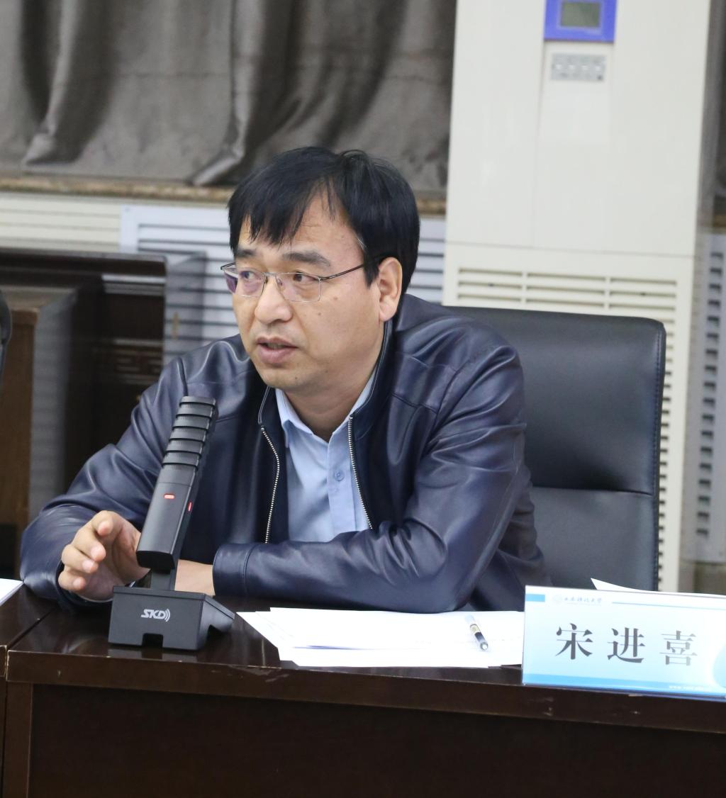 测绘学院院长李朋飞汇报了地理学学位授权点依托学校煤炭地矿特色学科群优势,形成的具有西北地域特色和空间信息技术优势的4个特色鲜明学科方向及教师团队,重点讲述了学位点如何聚集人才培养、如何做实社会服务,同时直面痛点问题并提出改进计划。