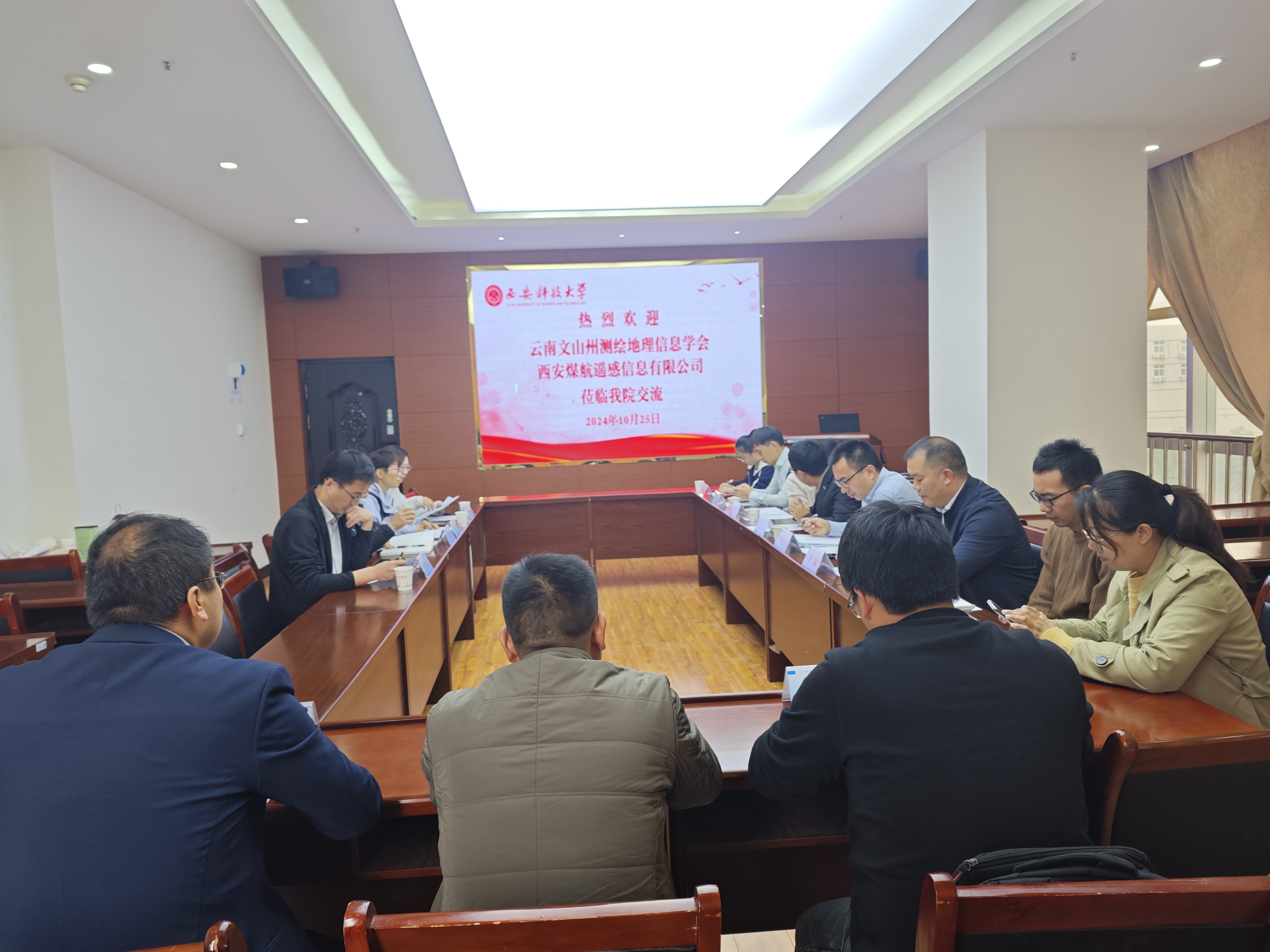 10月25日上午,云南文山州测绘地理信息学会谷雷主任、西安煤航遥感信息有限公司罗东海总经理一行来我院调研交流。院长李朋飞、副院长史晓亮和竞霞、研究生教务办主任宋莹老师参加了交流会。