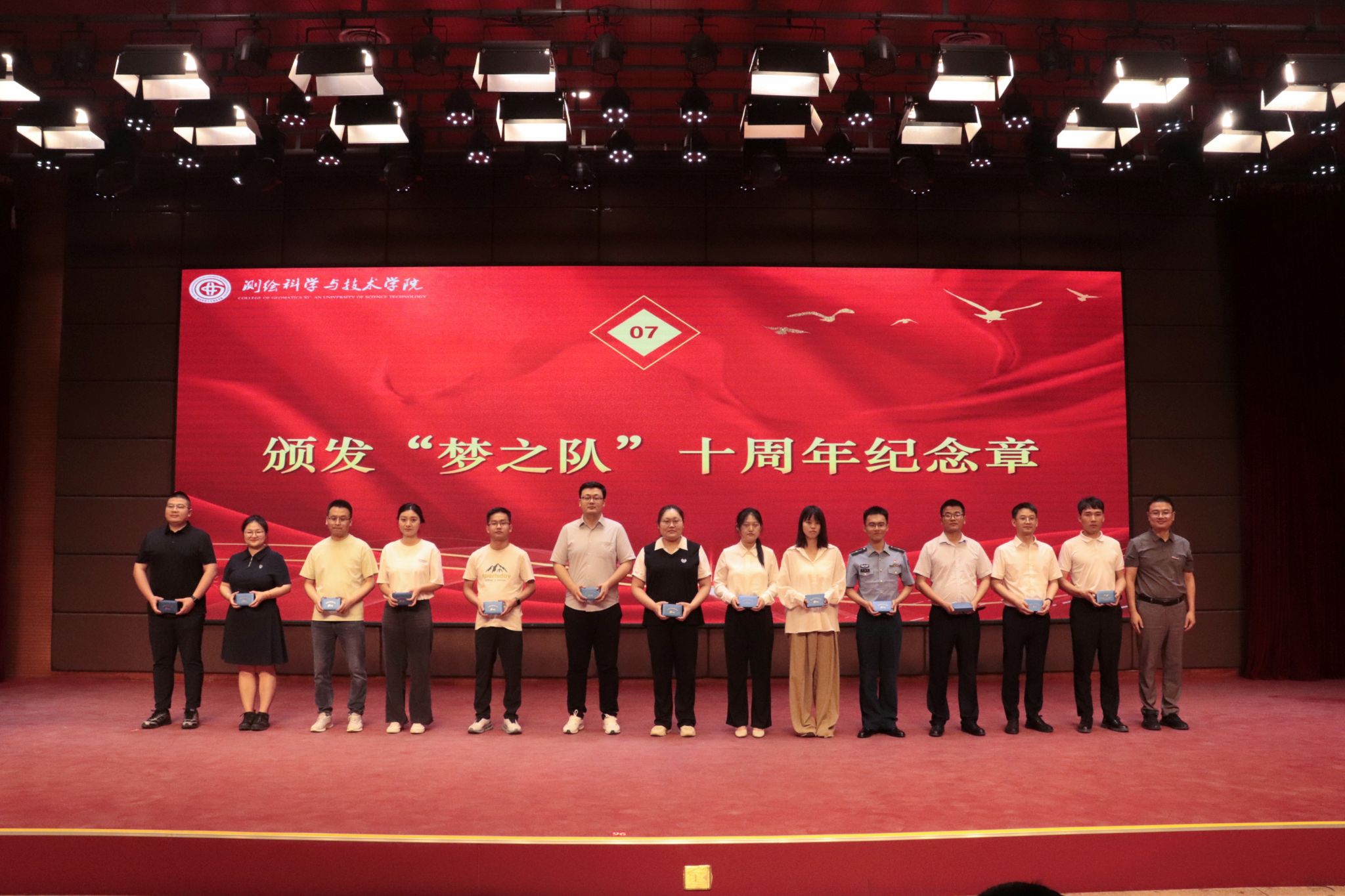 李朋飞代表学院为校友代表颁发了“梦之队”十周年纪念章,以致敬他们的拼搏与奉献,十年荣耀,感恩同行,“梦之队”的精神与情怀将继续传承下去。
