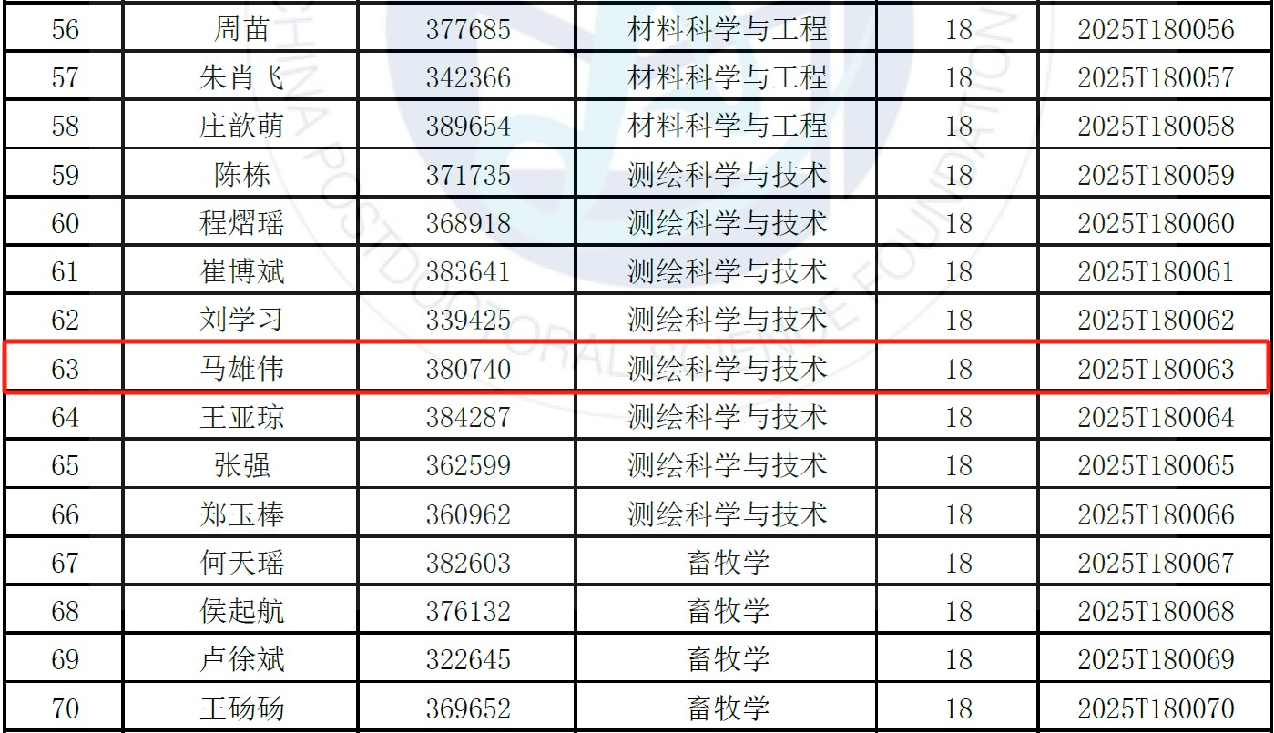 近日,中国博士后科学基金会公布了2025年度第18批特别资助拟资助人员名单。依托米兰中国官方测绘科学与技术博士后科研流动站,我院博士后马雄伟获批立项资助。此次获批是自2023年我院测绘科学与技术博士后流动站获批设立以来,首次获得博士后科学基金特别资助项目,标志着我院高层次青年科研人才培养取得重要进展!