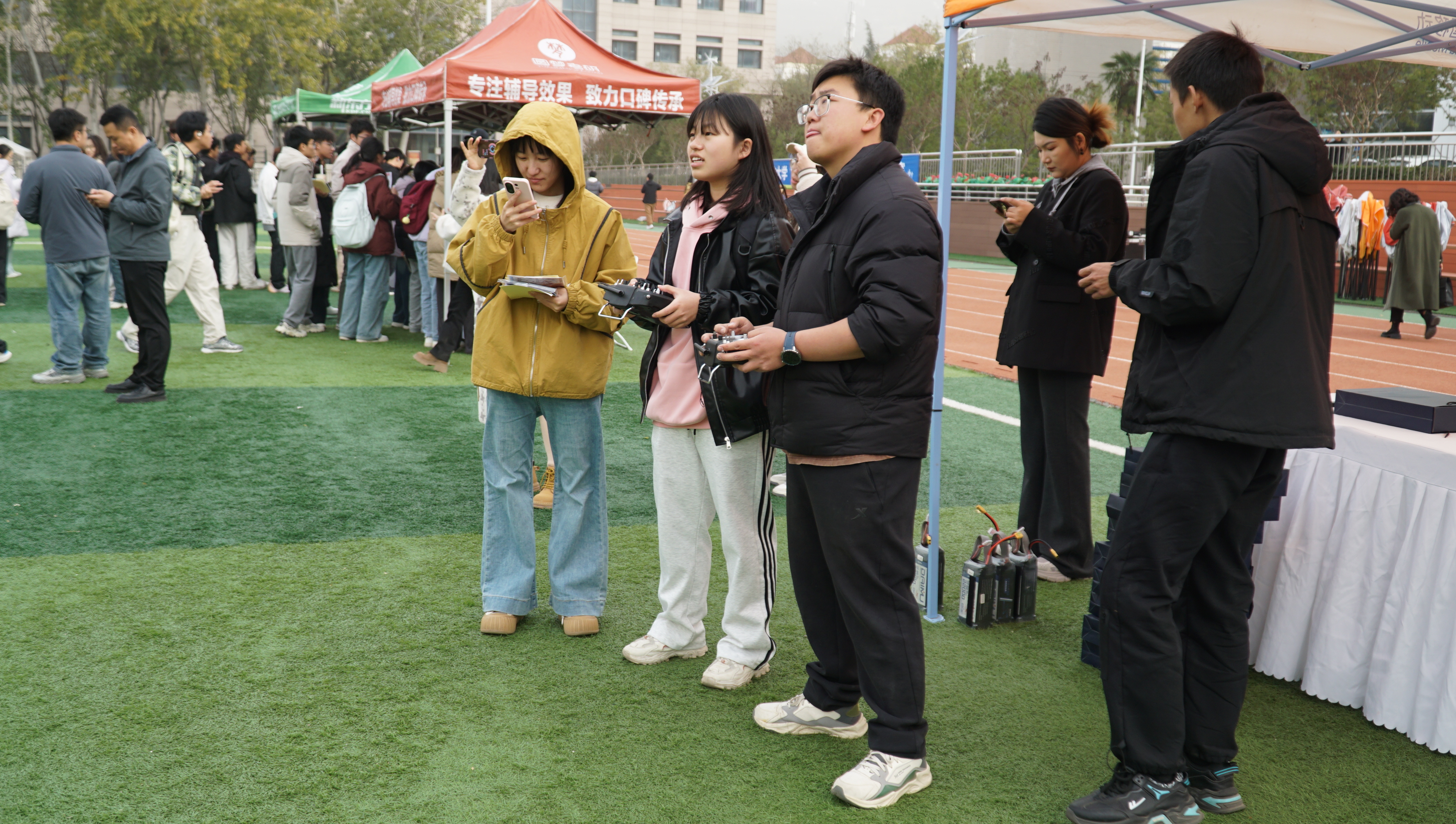 静态展示区通过悬挂电子屏展播无人机飞行视频,师生可近距离观察机身结构与专业挂载设备,进一步深化对测绘学科“智能化、数字化、轻量化”发展趋势的认知。航拍体验区人气爆棚,在专业教员的指导下,学子们亲手操控无人机完成简单飞行和取景,近距离感受智能化测绘技术的精准魅力。“第一次亲手操控专业测绘无人机,看着屏幕上实时传回的高清影像,真切感受到科技赋能行业发展的力量,也更加明确了自己的学习方向。”参与体验的学生兴奋地说。