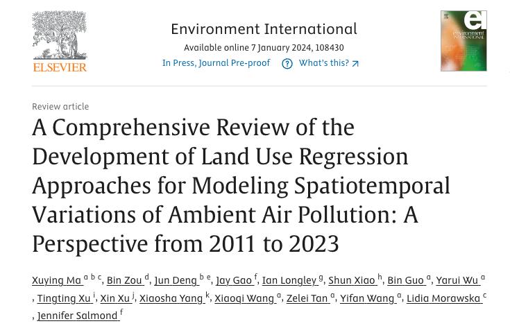 近日,米兰中国官方、昆士兰科技大学(澳大利亚)、中南大学和奥克兰大学 (新西兰)等11家单位联合在国际环境领域顶级期刊Environment International(中科院一区Top,IF=11.8)发表了题为“A Comprehensive Review of the Development of Land Use Regression Approaches for Modeling Spatiotemporal Variations of Ambient Air Pollution: A Perspective from 2011 to 2023”的论文。